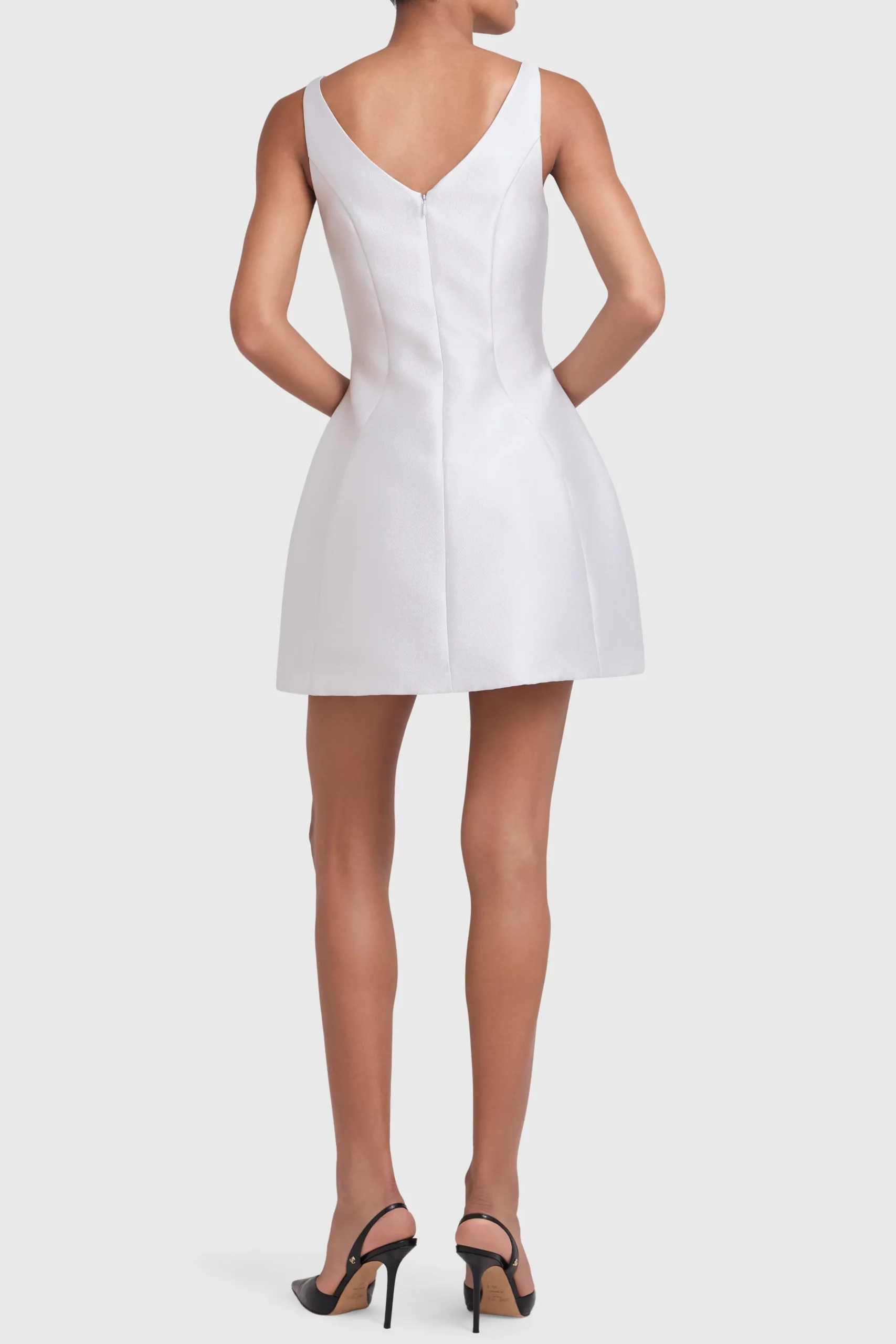 Light up the room in the Verity Dress, a stunning mini with a sleek shape that flatters from every angle. The deep V-neckline and perfectly sculpted skirt create a refined yet sweet silhouette. Style it with metallic heels and minimal jewelry for a look that’s ready to make an impression.