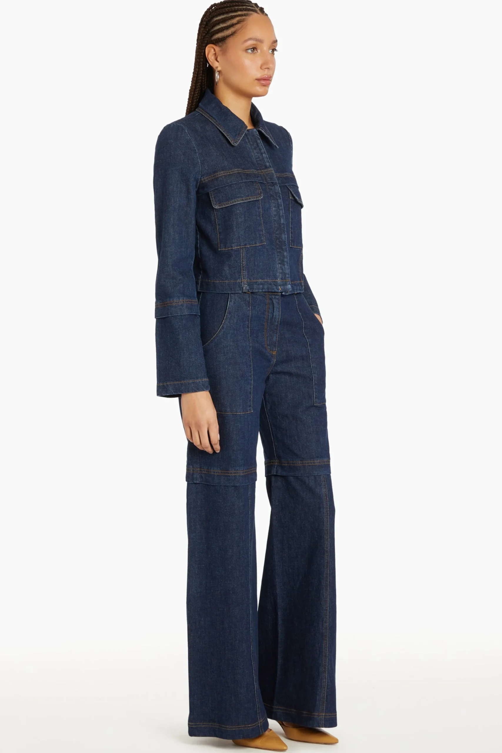 Enjoy fall days in the Lucas Jacket, your new go-to denim piece. Featuring large chest pockets, a sharp collar, and detailed sleeves, this jacket reimagines denim for a flirty, feminine silhouette. Layer it over a fitted tee or a flowy dress to add a structured touch to any look.