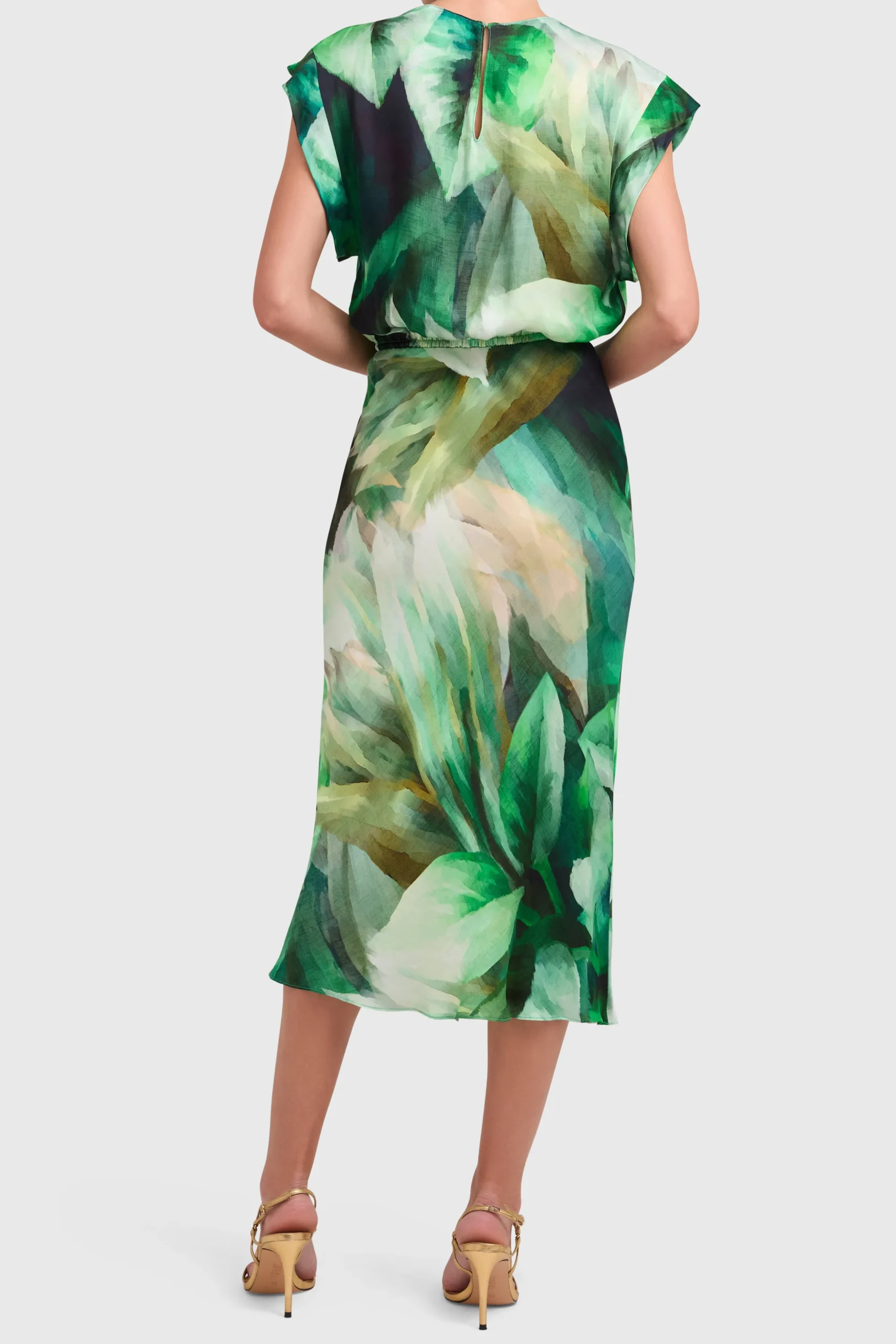 Light up the room in the Sorell Dress, an elegant yet expressive addition to your fall lineup. Featuring a dropped shoulder and gathered drawstring waist, this mid-length dress radiates energy in a vibrant green print. Pair it with sleek heels for evening plans or ankle boots for a more casual daytime look.