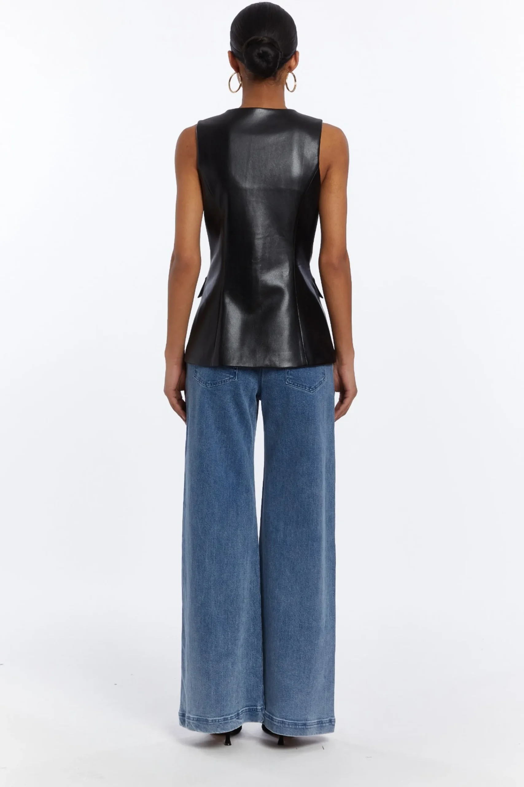 Refine your fall looks with the Kya Top, a structured top with feminine charm. This sleeveless design features princess seams that flatter your figure and four gold dome buttons offer a moment of luxury. The faux flap pockets in front enhance the polished appeal. Perfect for both work and after-hours, the Kya Top pairs wonderfully with the Lennon Pants.