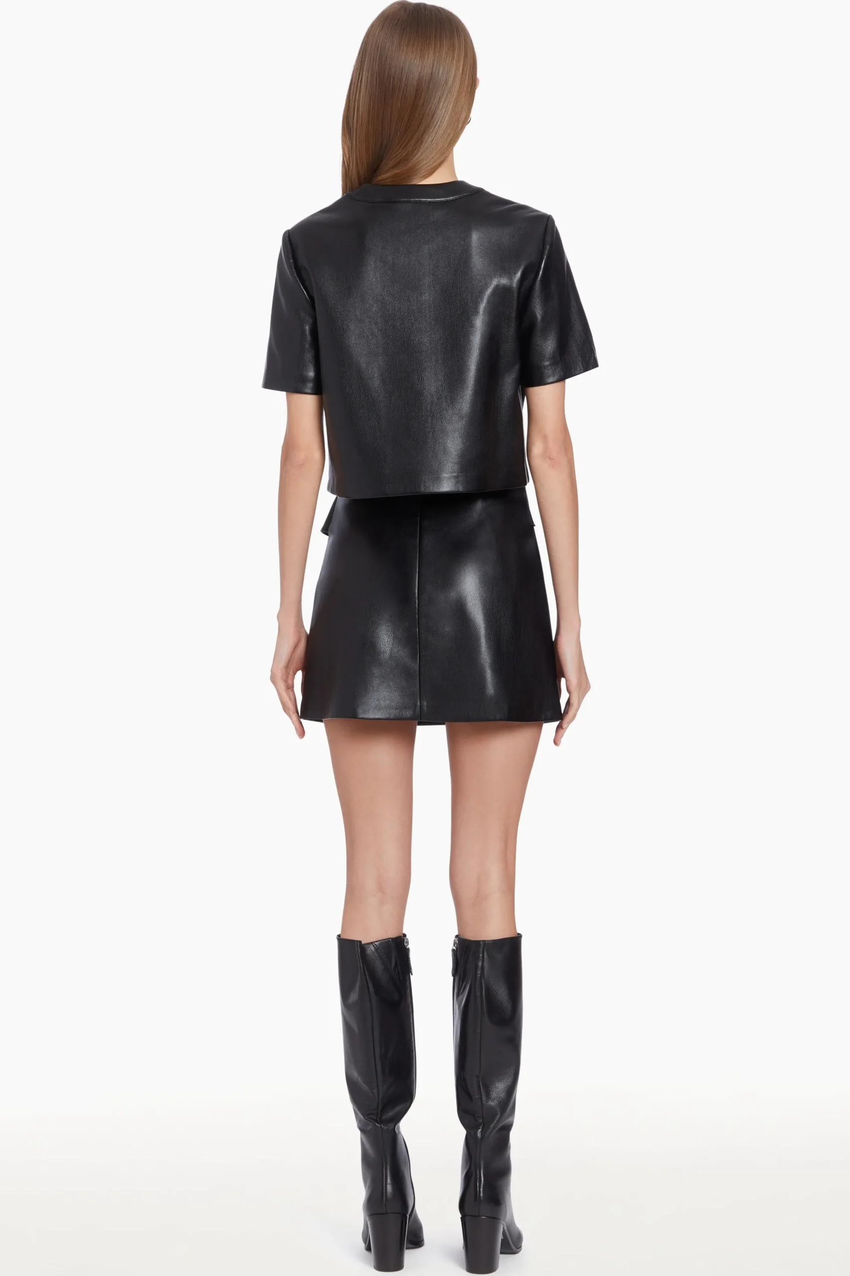 Reimagine leather in the cool and easy Braswell Top. With a short sleeve, cropped cut, and subtle covered buttons, this leather option is an easy way to upgrade any outfit. Style it with jeans during the day, or pair with our Lennon pants for a full leather look.